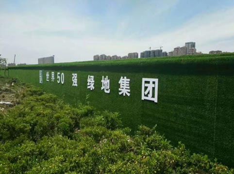 围挡草坪,一般是指在铁皮、彩钢板、水泥墙、砖墙等围挡上粘贴人造草坪,在此基础上设置广告字标语等,具有绿色环保、吸音防尘等功能。